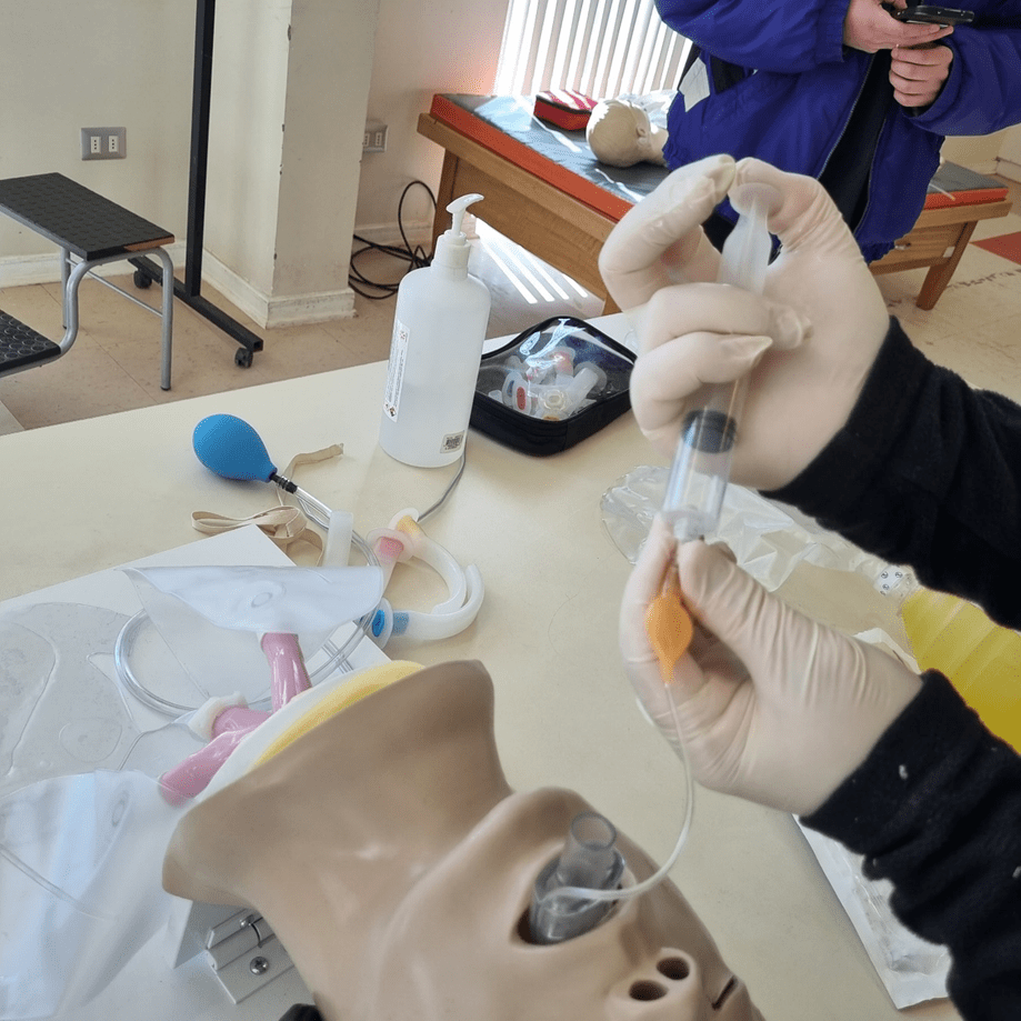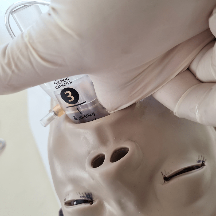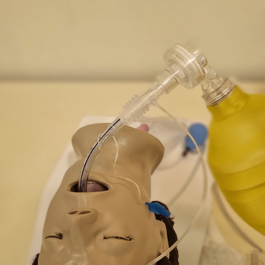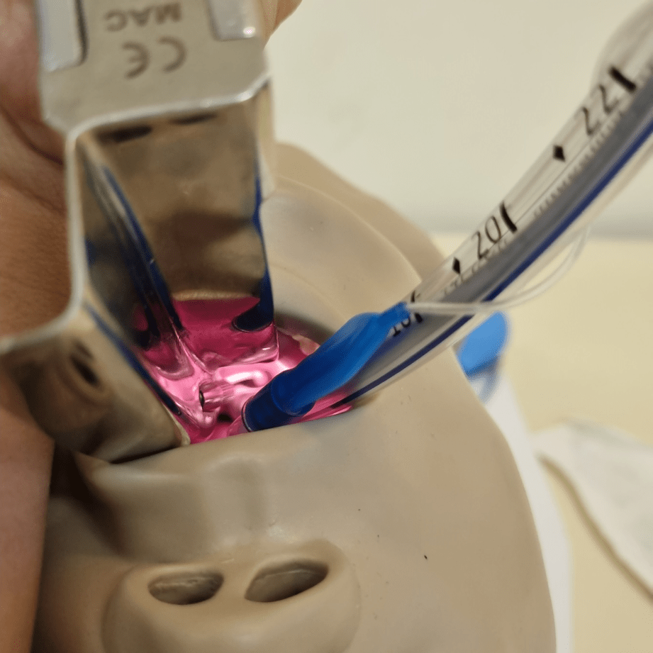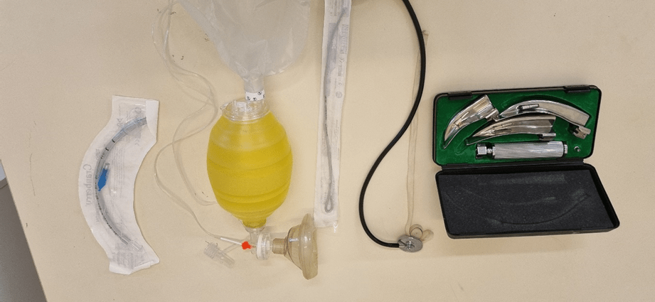 Pasos 1 y 6 de las 7P (preparación y posicionamiento del tubo orotraqueal)