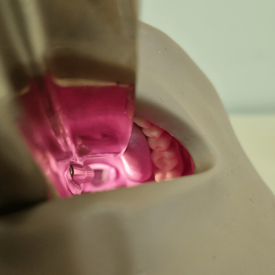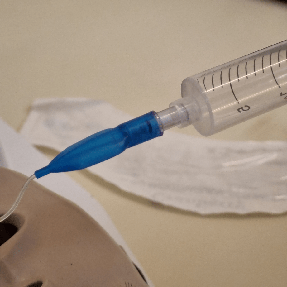3.- Girar la cánula en 180 grados al llegar al paladar blando