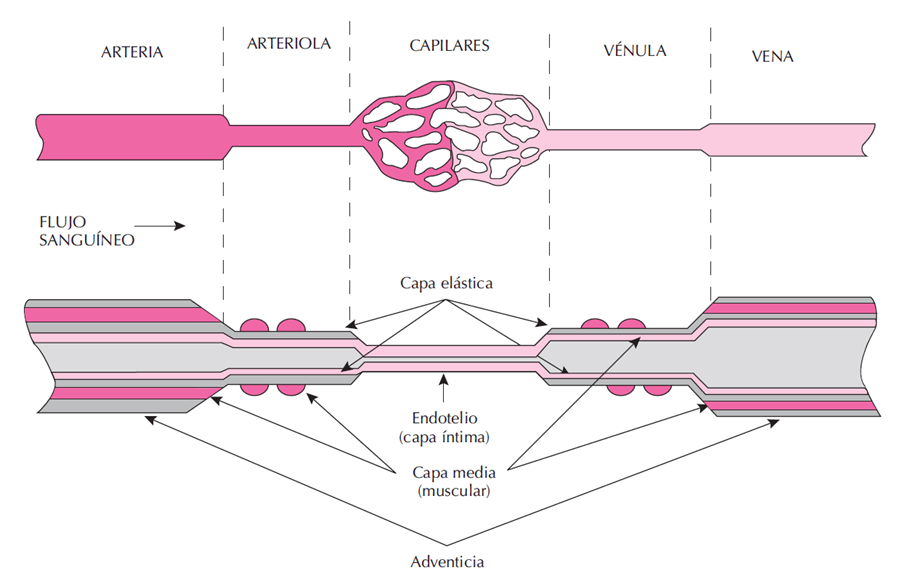 La circulación pulmonar nace desde la válvula y arteria pulmonar, que lleva sangre venosa a los pulmones proveniente del ventrículo derecho, está conformada por tres tipos de arterias, elásticas, musculares y capilares, estas últimas son producto de la pérdida de las capas adventicias y musculares al profundizar en el aparato respiratorio, quedando formadas únicamente por endotelio, que es altamente susceptible a cambios de oxigenación, generando vasoespasmo en zonas pobremente ventiladas, lo que optimiza el intercambio gaseoso.