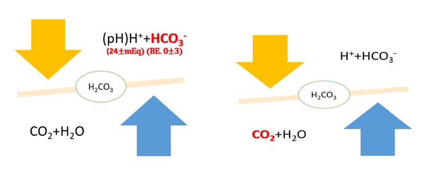 Como se mencionó en el capítulo anterior los niveles normales de pH fluctúan entre 7,35 y 7,45, valores por debajo de este intervalo son llamados acidosis y por sobre alcalosis. Existen 4 alteraciones fisiopatológicas principales del equilibrio ácido base; acidosis respiratoria, alcalosis respiratoria, acidosis metabólica y alcalosis metabólica, el tratamiento de todas ellas debe ser atacar la causa.