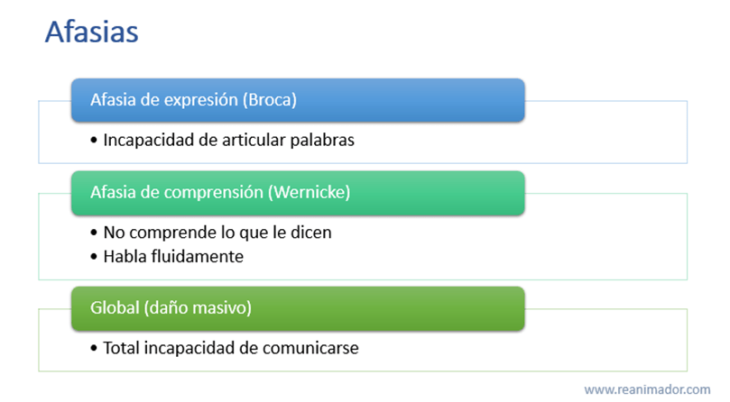 En la S de signos y síntomas, los reanimadores deben buscar dirigidamente la presencia de afasias y agnosias, pues esto ayudará a determinar que hospital es más oportuno para el paciente, como veremos más adelante.