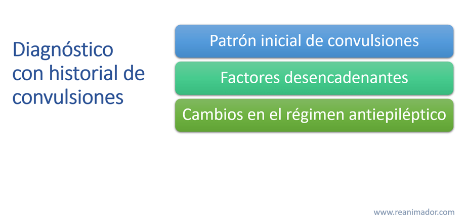 La obtención de información se torna más sencilla cuando el paciente posee previamente alguna condición convulsivante. En ese caso, la anamnesis enfatizará en el patrón inicial de las convulsiones, en los factores desencadenantes y en los cambios del régimen anti epiléptico.