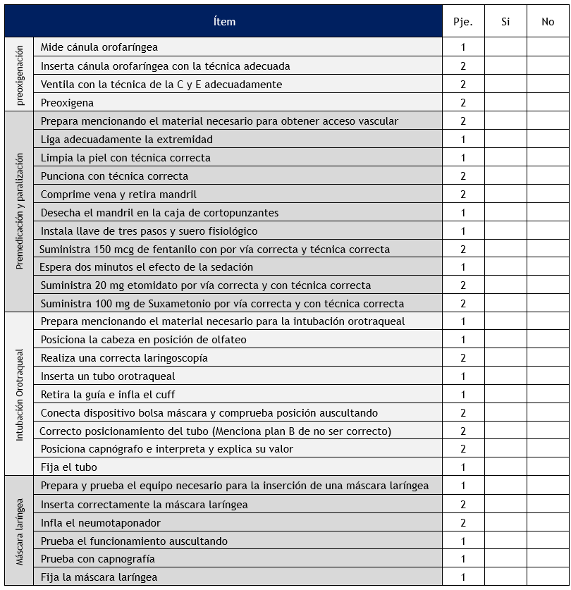 Pauta de evaluación manejo de vía aérea con acceso vascular