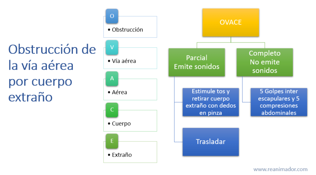 Una tercera condición de riesgo vital que compromete la vida de nuestros pacientes y que es corregible con maniobras de soporte vital básico, es la obstrucción de la vía aérea por cuerpo extraño (OVACE).