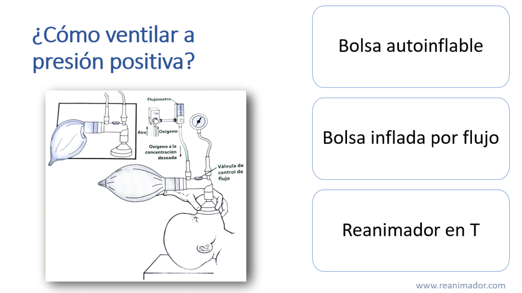 Como se mencionó anteriormente la ventilación a presión positiva es la acción más importante de la reanimación neonatal, pero no es una acción de rutina, debe realizarse cuando el paciente no respire, lo haga entrecortado, en caso que la frecuencia cardíaca sea menor a 100 latidos por minuto o cuando la saturación de oxígeno persista baja para la edad, a pesar de que la fracción inspirada de oxígeno sea de 100%.