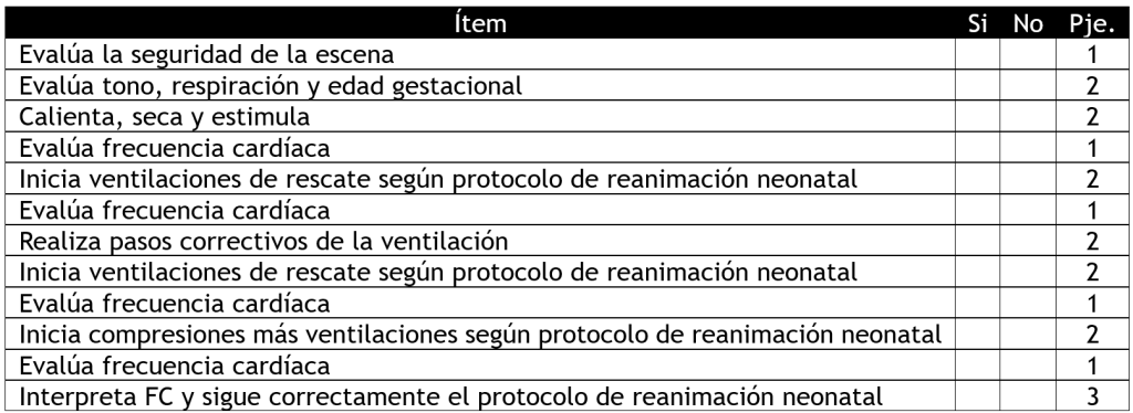 Pauta de evaluación reanimación neonatal