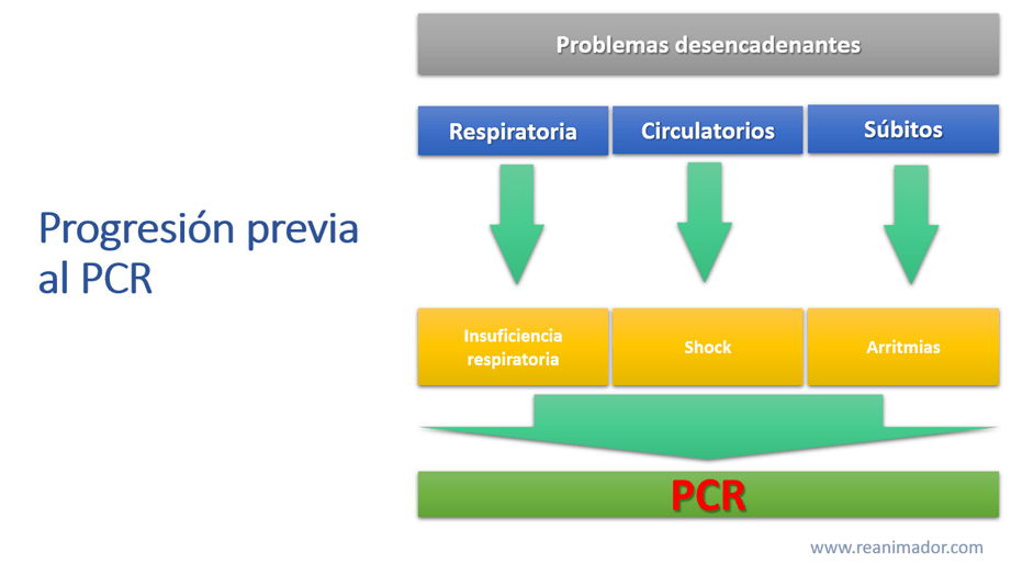 El paro cardiorrespiratorio en niños, a diferencia que en adultos, viene casi en el 100% de los casos precedido por un problema desencadenante, las causas más prevalentes son de tipo respiratorias, circulatorias o súbitas, dentro de las respiratorias la más común es la insuficiencia respiratoria asociada a infecciones, por ejemplo, la neumonía adquirida en la comunidad o inflamatorias como las crisis asmáticas. Los desencadenantes circulatorios comúnmente llevan al paciente a la condición de Shock, que se define como la incapacidad del sistema circulatorio de transportar oxígeno al resto del cuerpo. Otras causas como la muerte súbita son asociadas a arritmias cardíacas, de cualquier manera todos estos problemas llevan al paciente pediátrico a sufrir un paro cardiorrespiratorio.