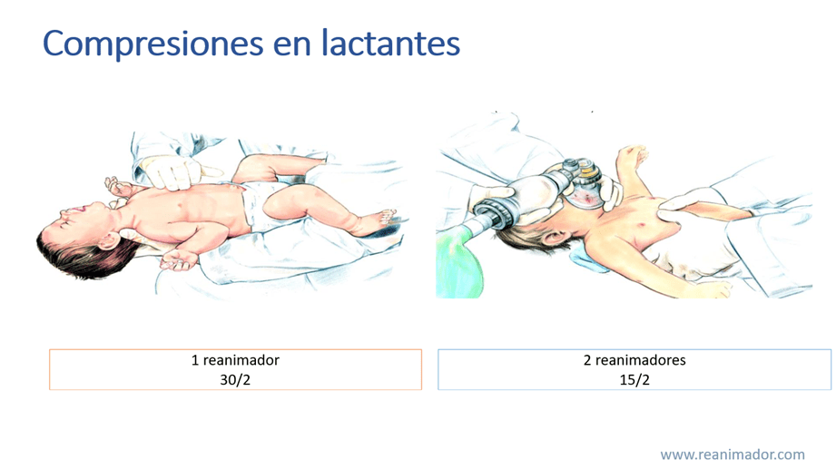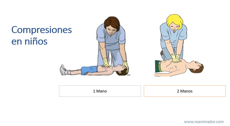 La técnica de compresiones fluctúa según la cantidad de reanimadores, con dos reanimadores se usará la de dos pulgares, en cambio cuando el reanimador se encuentra solo, las compresiones serán realizadas con técnica de dos dedos para poder realizar las ventilaciones en menor tiempo. En niños la técnica de compresiones también varía en función al tamaño del niño y del reanimador, así un reanimador pequeño puede comprimir con dos manos el tórax de un niño grande y un reanimador grande debe comprimir solo con una mano para evitar el daño de los órganos intratorácicos del paciente.