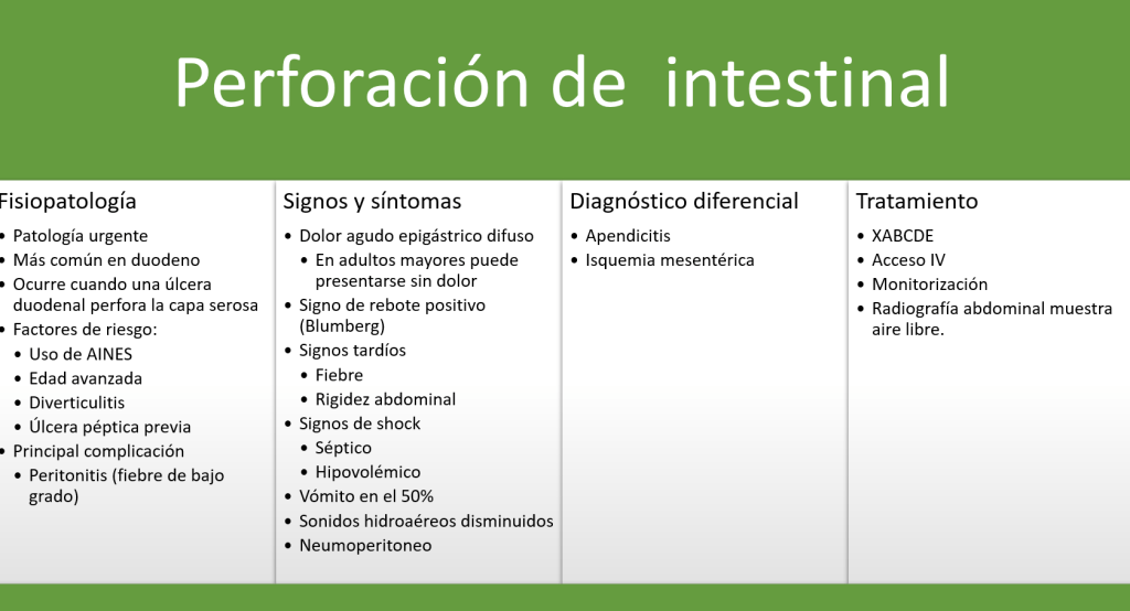La perforación de cualquier estructura del tracto digestivo constituye una patología grave en si misma por alta gama de complicaciones mortales subsecuentes a esta. La estructura intestinal más susceptible a ruptura es el duodeno, esto ocurre cuando una úlcera duodenal perfora la capa serosa.